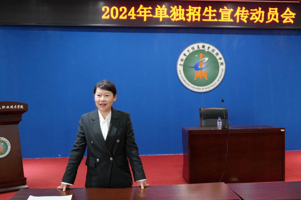 会上,招生工作办公室主任任琳结合全省招生情况,从背景分析、计划编制、招生录取等方面对今年的单招考试宣传工作做出具体安排。