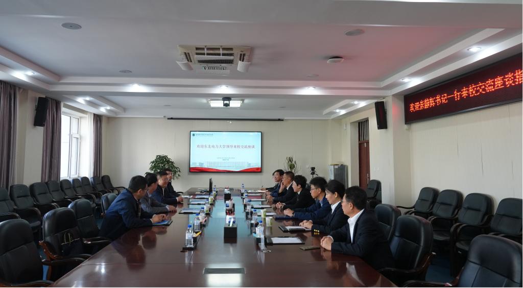 9月26日,东北电力大学党委书记张静辉带队一行到我校交流座谈。学校党委书记何晓杰、校长杨勇、党委副书记石洪发、纪委书记高楠、副校长刘占文、副校长张晓娟参加座谈交流。 张静辉书记介绍了东北电力大学发展历程和当前学科发展建设情况,详细说明了此次深入我校座谈交流的主要任务和工作对接方向,重点交流了人才培养和人才再教育途径等方面内容,并就下一步围绕硕、博联合培养模式开展深入交流探讨。 何晓杰书记代表学校向张静辉书记一行表示热烈欢迎,并从学校发展历程、专业建设情况、人才培养等方面做了详细介绍,重点交流了专业发展、人才引进、学历提升工作等方面内容,共同明确了下一步深入合作的主要内容,希望能够通过本次交流,进一步加强与东北电力大学开展更加多元的合作。 本次交流会为双方搭建了一个良好的沟通平台,有助于双方在未来进一步深化合作培养,共同助力地方经济发展。 (供稿单位:党政办公室 初审:孟令飞 复审:刘莹 终审:汤海涛)