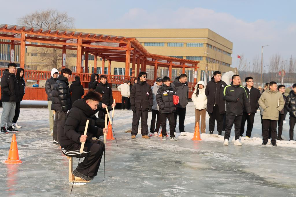 传承冰雪文化,展现非遗魅力。学校举办“第一届冰雪民俗非遗交流会”,邀请“松花江浪木根雕”传承人梁海臣老师、“赵氏烫画”传承人赵广清老师、“满族柳编传统技艺”传承人刘志敏老师、“古建筑彩画”传承人贾辉老师、“皮饰工艺”传承人王怀民老师等非遗大师打造“非遗大师工作室”。作为吉林省非物质文化遗产传承基地,学校组织单腿驴,抽冰猴,冰滑子等冰雪非遗竞技活动,让冰雪民俗从民间走进校园,将文化传承的种子播撒在学生心中,增强学生的文化认同感和民族自豪感,为吉林冰雪民俗非遗文化构建汇聚各方目光、实现深度展示与交流的平台,推动珍贵的民俗文化和传统技艺在现代社会的文化浪潮中熠熠生辉。