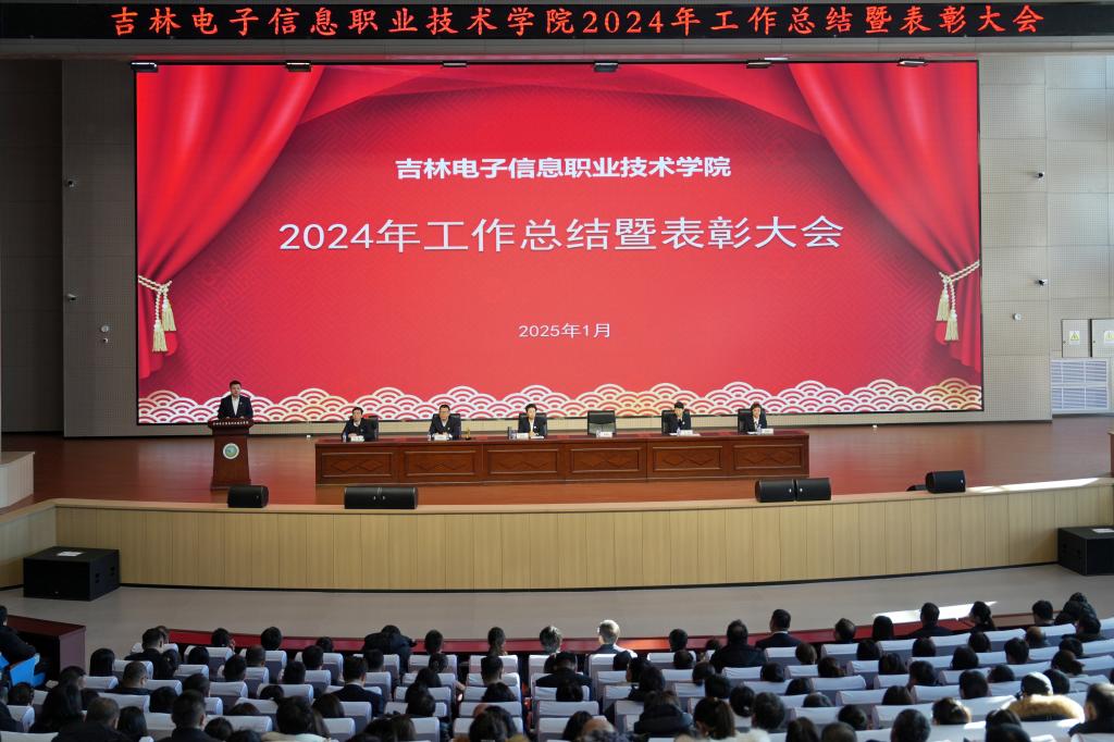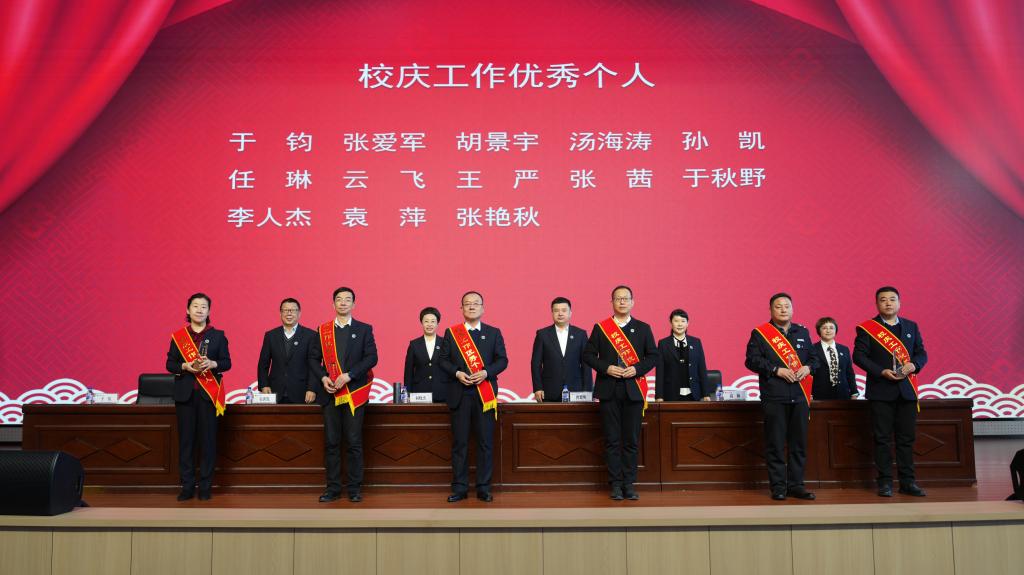 大会在庄严的国歌声中拉开帷幕。高楠、于钧、石洪发相继宣读了《2024届毕业生就业工作先进集体和优秀个人》《年度“四件大事”工作优秀个人》《“亮绩赛马”优秀干部》的表彰决定。